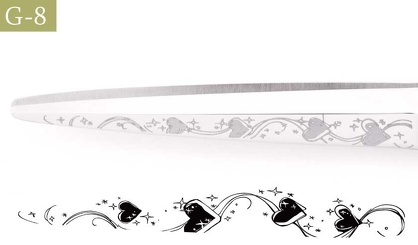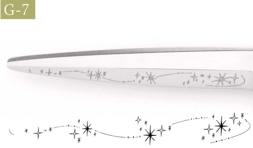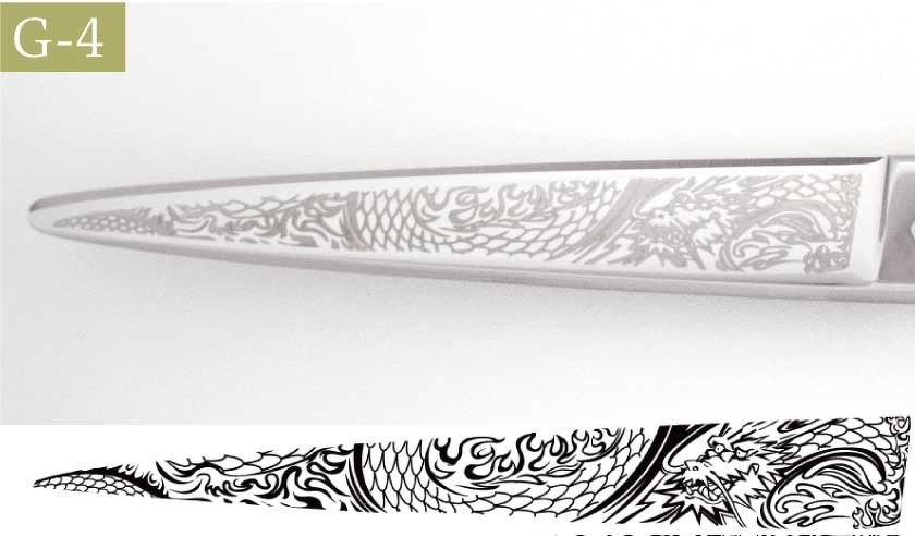 Laser Graphic is a wide-area laser engraving that utilizes the width of the scissor blade. This provides individualized scissors with enhanced fashion appeal.