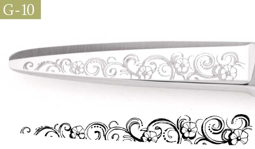 ・For clam-shaped blades and the straight blades of thinning scissors, laser engraving can be applied to most of the blade surface (within areas that won’t affect cutting performance).