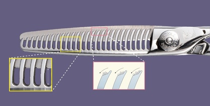 With a cut % about 30%, thinning scissors are easy to use for both hair volume adjustment and texture adjustment.
